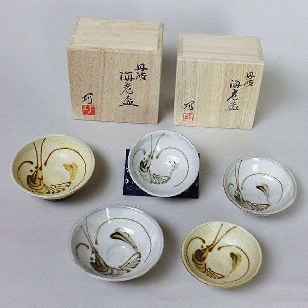 古丹波に倣い海老絵を描いた徳利と盃のセットです。